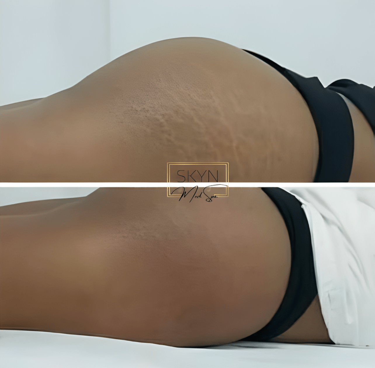 - An advanced, inkless treatment for stretch marks and scars that uses Nue SR serum to repair tissue and boost collagen and elastin production.